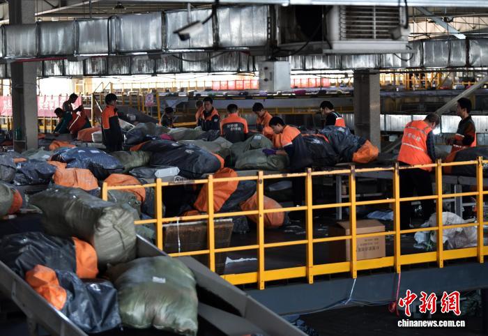 今日位于河北省石家庄市栾乡区的1家速递转运核心,任务职员正正在岗亭上劳碌。据引见,往年“单11”时代,该转运焦点日均处置量可达400万件以上。中新社记者 翟羽好 摄