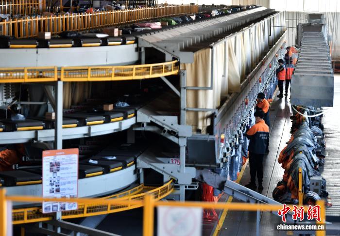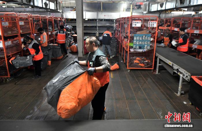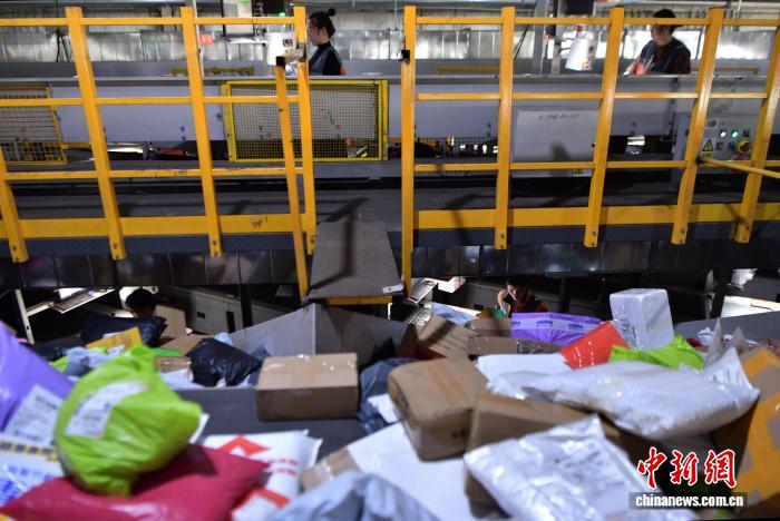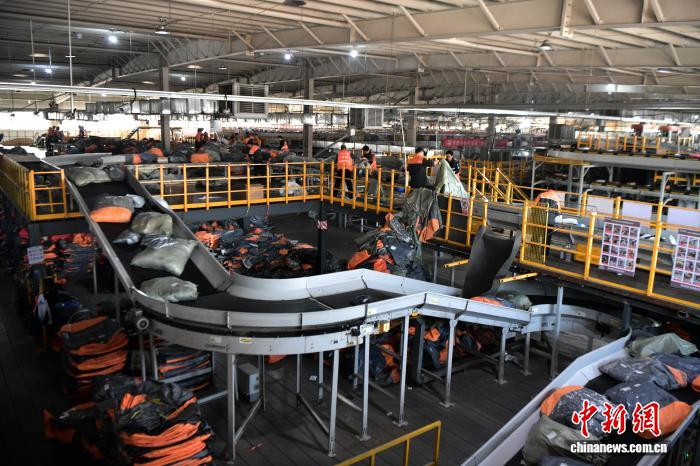 今日位于河北省石家庄市栾乡区的1家速递转运核心,任务职员正正在岗亭上劳碌。据引见,往年“单11”时代,该转运焦点日均处置量可达400万件以上。中新社记者 翟羽好 摄